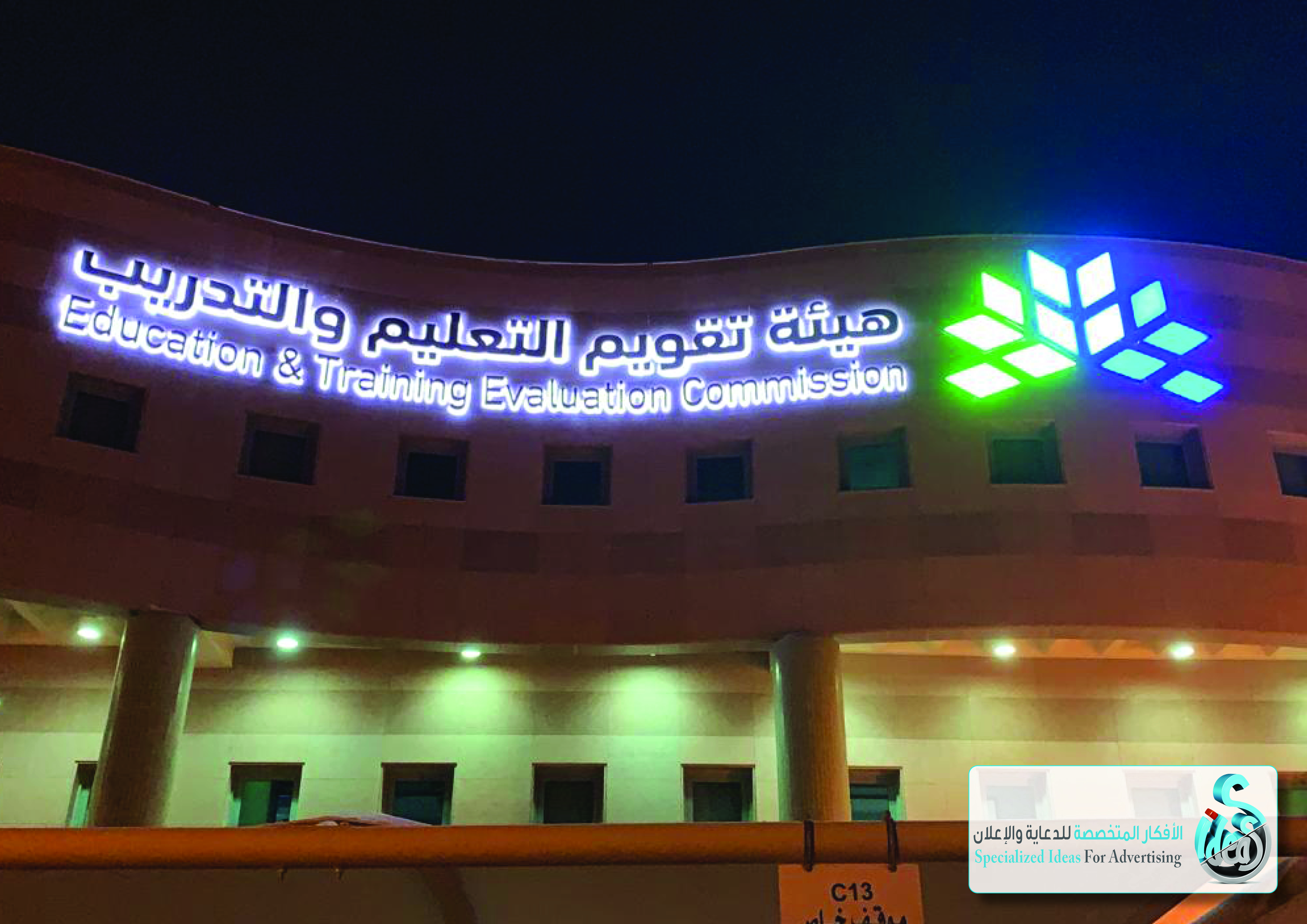 لوحة زنكور LED مضيئة من الأمام لمبنى هيئة تقويم التعليم والتدريب