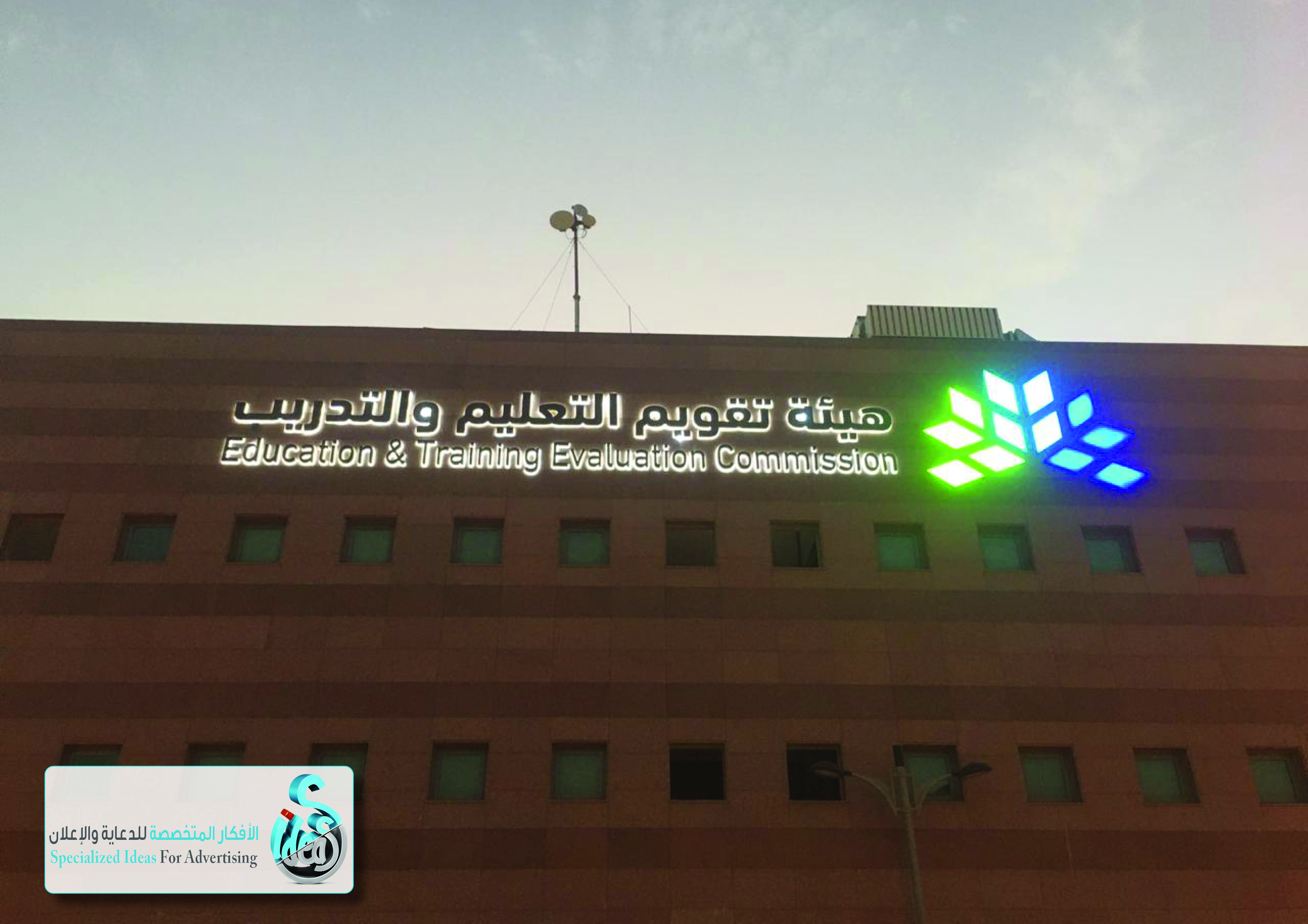 لوحة زنكور LED مضيئة من الأمام لمبنى هيئة تقويم التعليم والتدريب