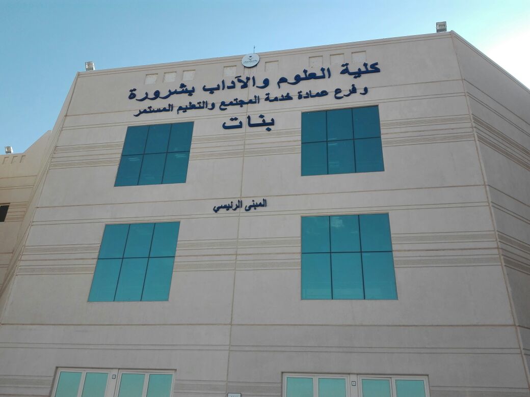 لوحة مبنى كلية العلوم والاداب بشرورة (جامعة نجران)
