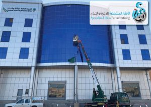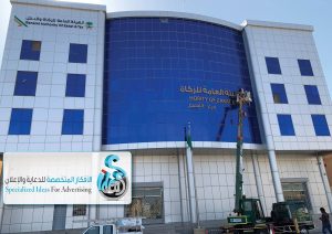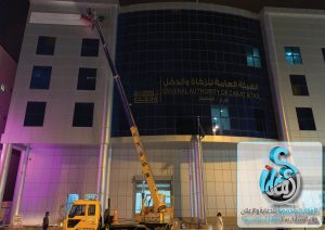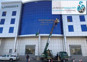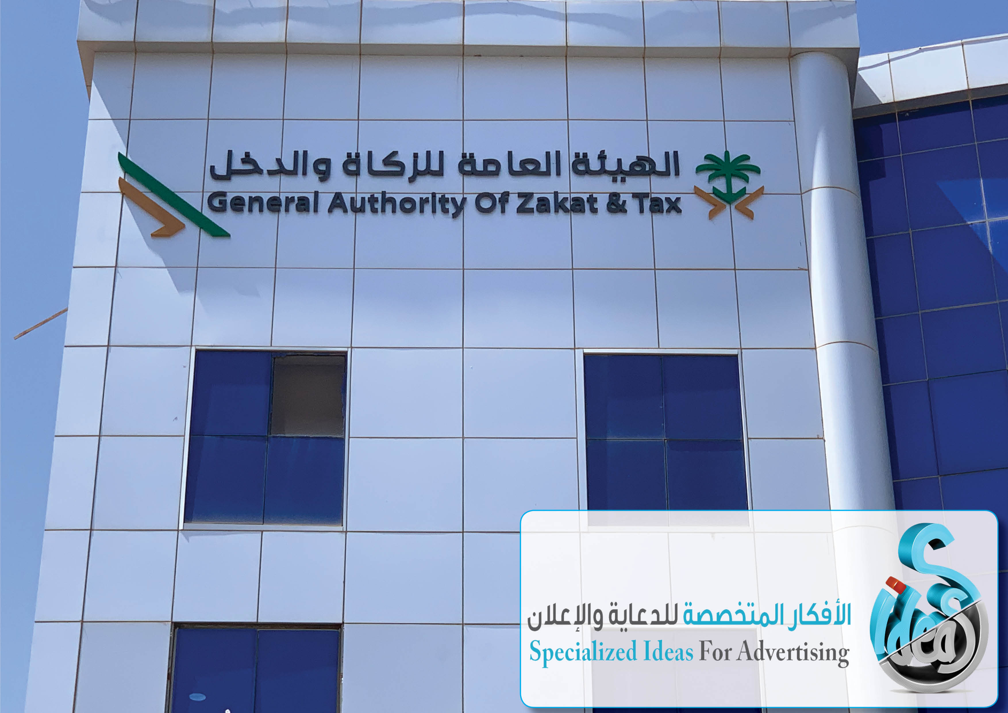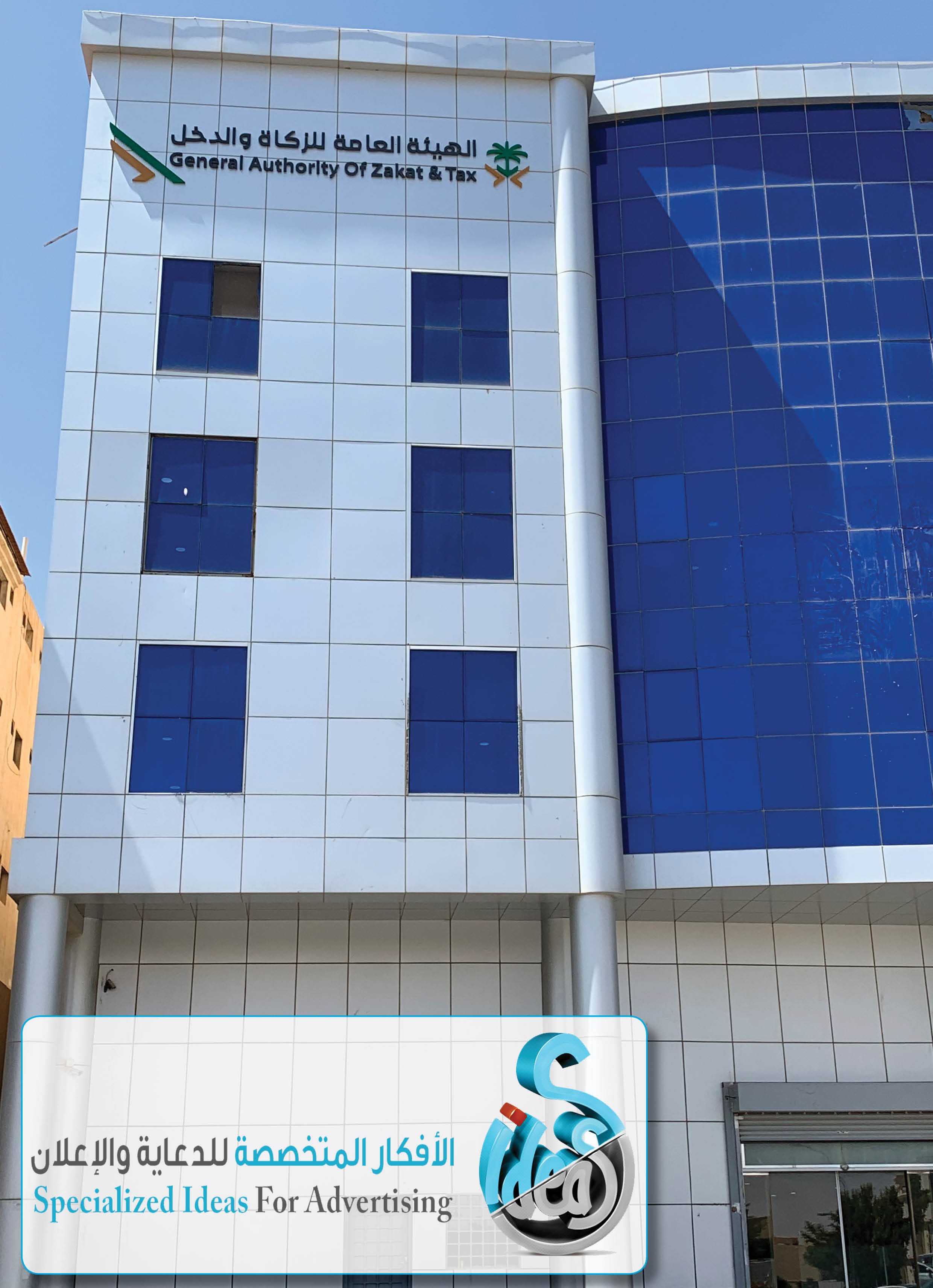 تصميم وتنفيذ وتركيب لوحة زنكور لواجهة مبنى الهيئة العامة للزكاة والدخل – فرع القصيم بريدة