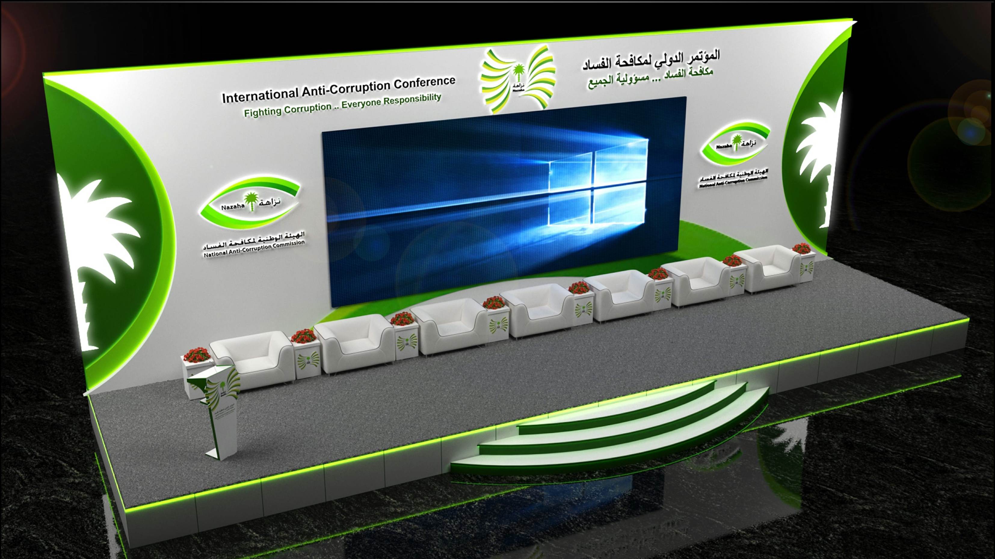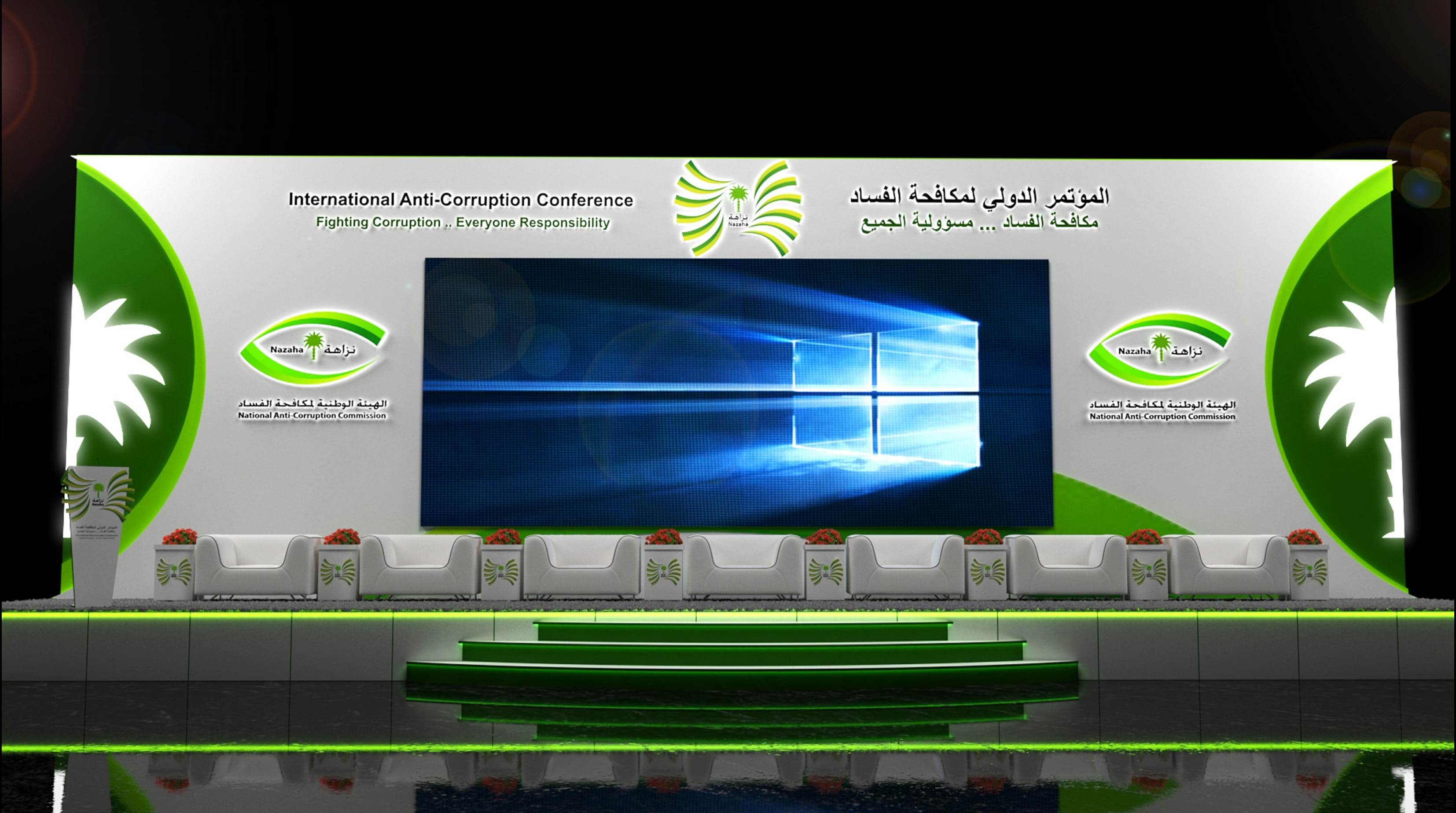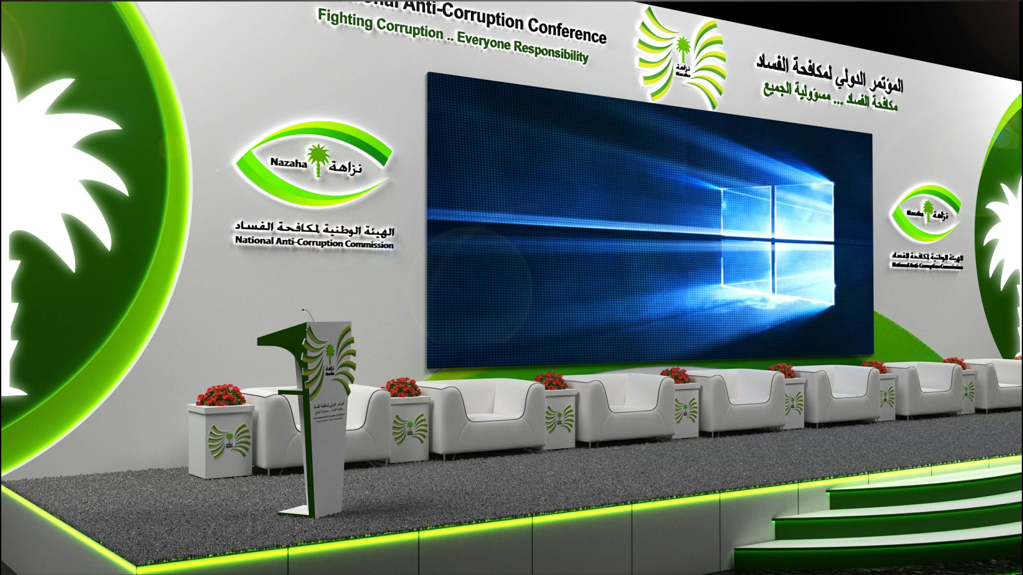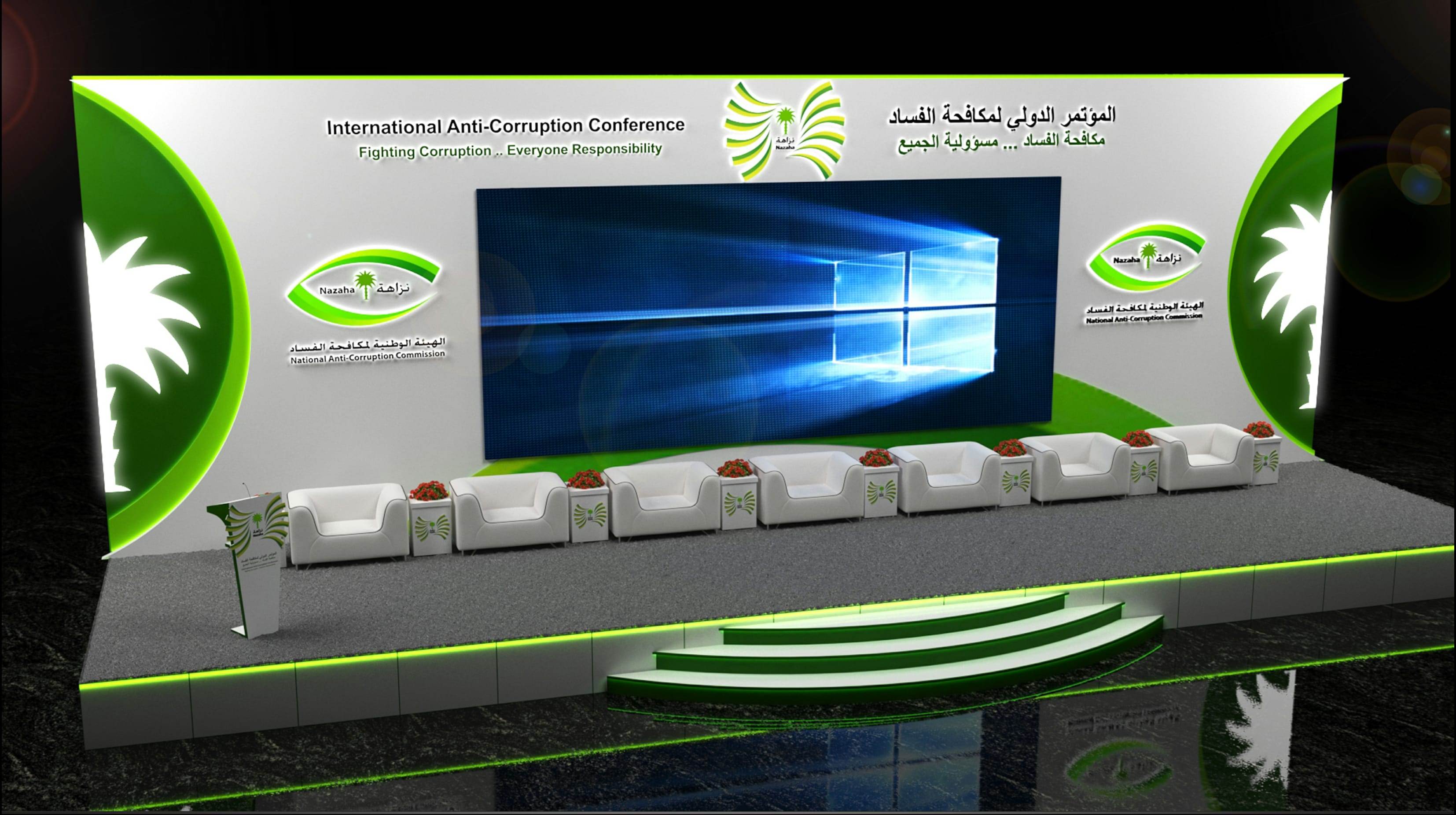 تصميم مسرح الهيئة الوطنية لمكافحة الفساد – نزاهة – في المؤتمر الدولي لمكافحة الفساد